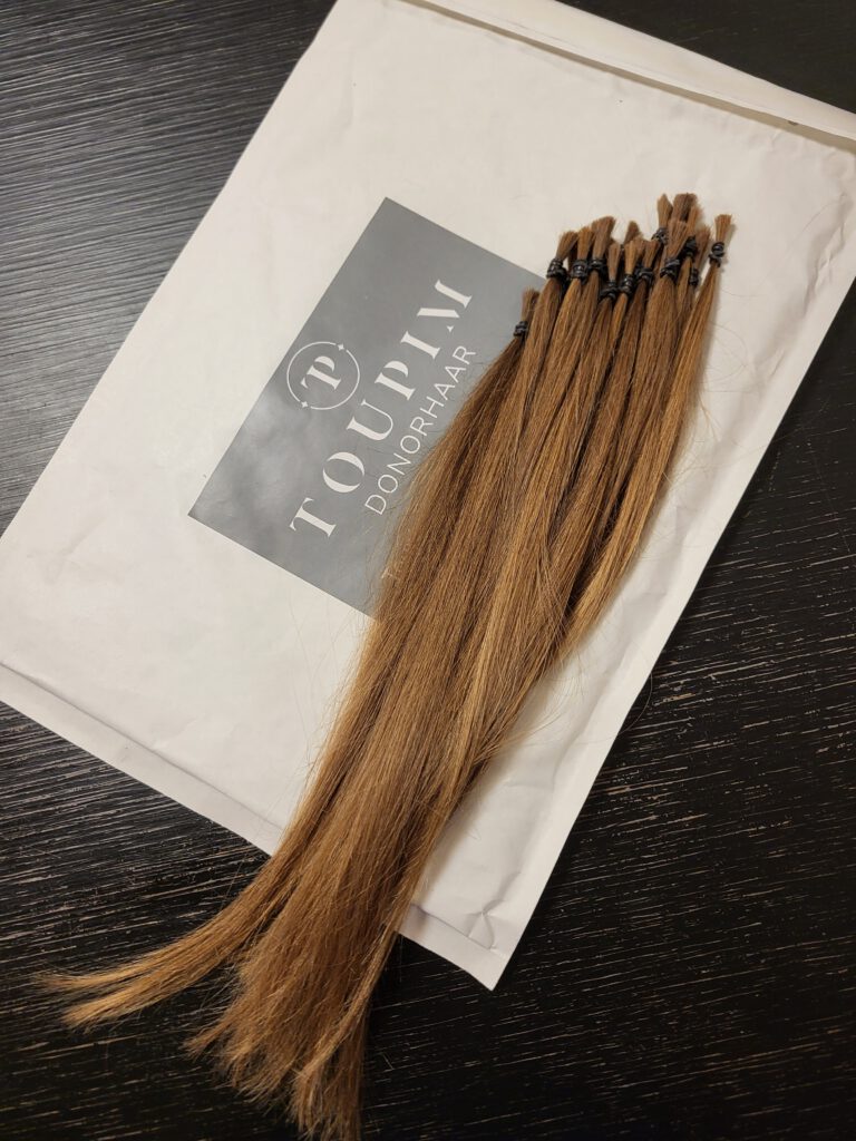 Januari 2023 vroeg Melanie mij om hulp wat betreft haar haren. Wat normaal gesproken een normale vraag zou zijn, had deze vraag een andere lading, Melanie was ziek. Melanie wist dat zij door haar aankomende behandelingen afscheid zou moeten nemen van haar haren, een extra klap op het nieuws wat zij al had mogen ontvangen. Ik nam de zoektocht naar haarstukken bij haar uit handen en kwam op dat moment in aanraking met Toupim. Aangezien Melanie altijd zo trots was op haar eigen haar paste dit perfect bij haar en begon zij aan een andere haarreis.
